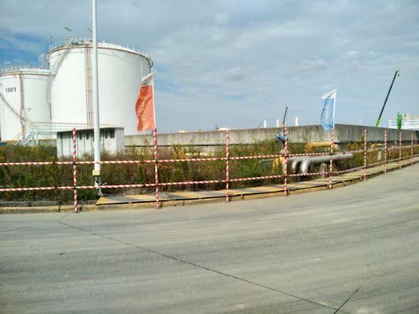 地理位置及周邊環(huán)境:上海孚寶港務(wù)有限公司廠區(qū)南臨海堤,北側(cè)C2地塊屬于上海氯堿公司,西側(cè)A1、A2、A3、B地塊屬上海賽科公司用地,東側(cè)D1地塊分別屬于巴斯夫聚氨酯公司、亨斯邁聚氨酯公司、上海聯(lián)恒異氰酸酯公司。 013#罐組及泵區(qū)位于庫(kù)區(qū)的中部,其東側(cè)為已建的010#罐組;南側(cè)為已建的008#罐組和011#罐組;其西側(cè)為已建019#罐組、擬建甲類危廢庫(kù);其西北側(cè)為已建的消防廢水收集池;北側(cè)為庫(kù)區(qū)預(yù)留用地,現(xiàn)為空地。新增泵組布置于013#罐組現(xiàn)有泵區(qū)東部。018-2#罐組及泵區(qū)位于庫(kù)區(qū)的北部,其東側(cè)為庫(kù)區(qū)預(yù)留用地,現(xiàn)為空地;南側(cè)為庫(kù)區(qū)預(yù)留用地,現(xiàn)為空地;西側(cè)為已建的區(qū)域變電站及焚燒爐;北側(cè)為018-1#罐組。 | |
